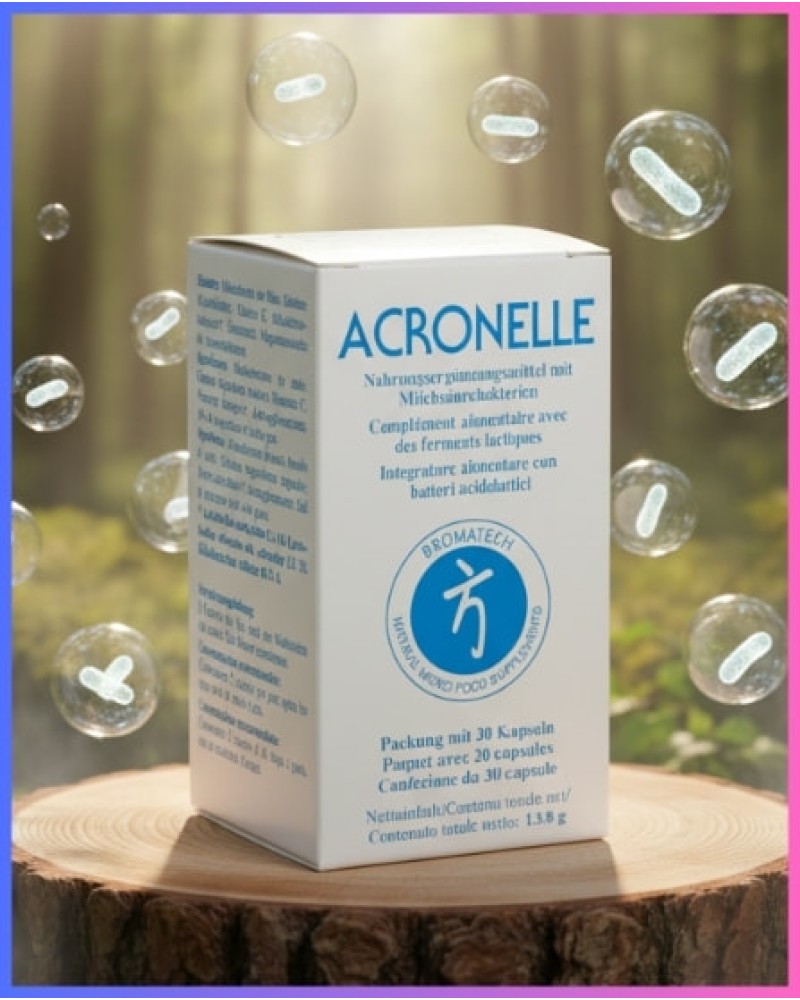 Integratore alimentare con fermenti lattici che favorisce l'equilibrio della flora intestinale.