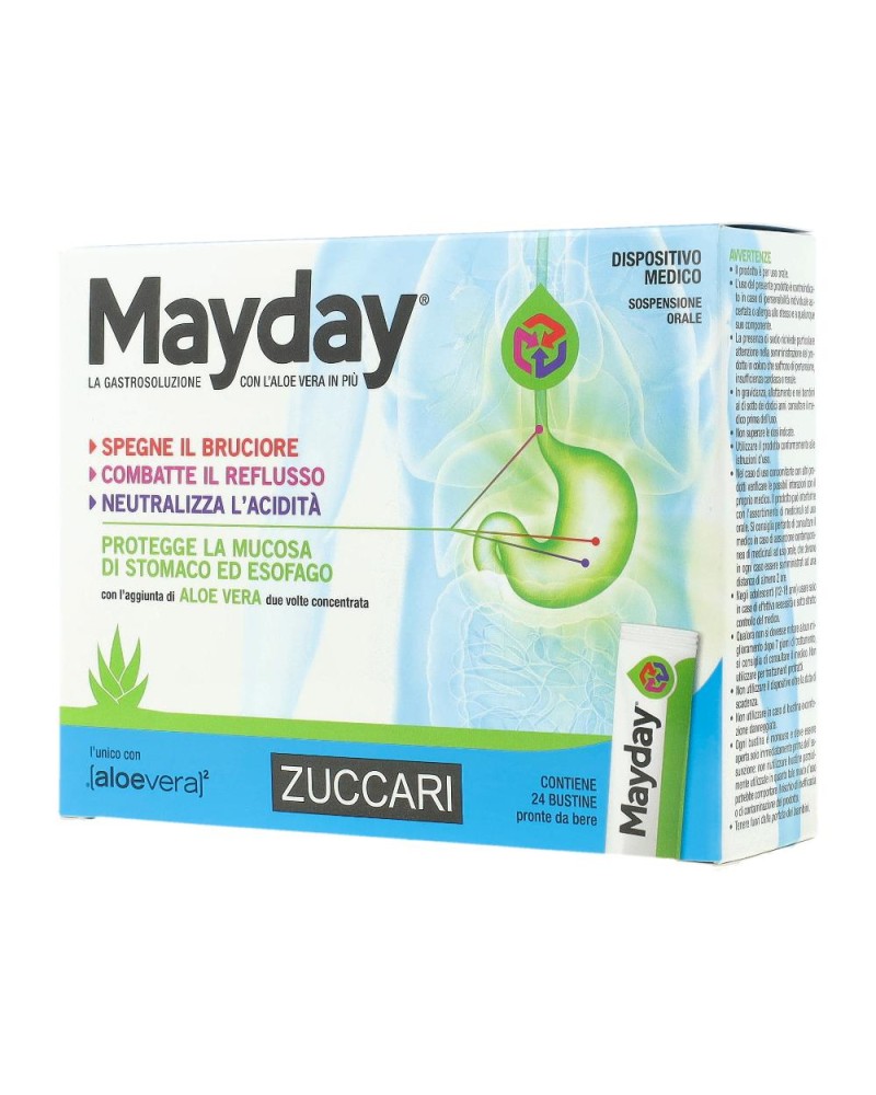 Indicato per il trattamento del reflusso gastro-esofageo e per l’attenuazione dei sintomi associati quali bruciore, rigurgito acido, esofagite da reflusso, pirosi gastrica, tosse e infiammazione laringo-faringea. Mayday è indicato anche in caso di pirosi gastrica dovuta a cattiva digestione.