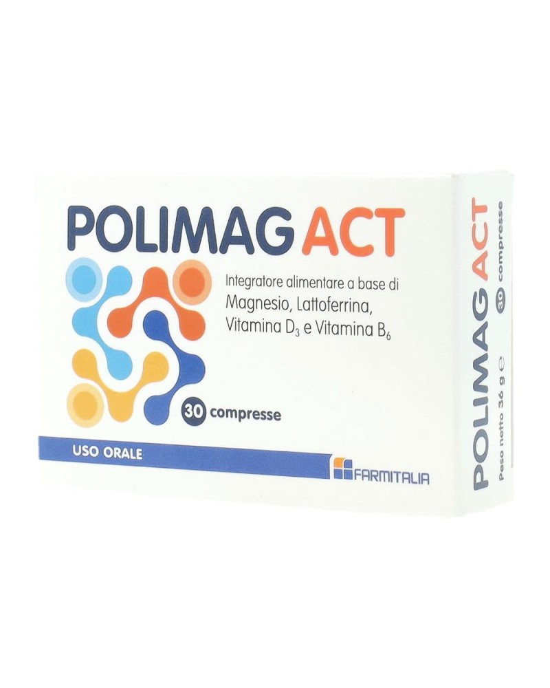 Polimag Actè un integratore a base di vitamine e sali minerali: Magnesio, Vitamina D3, Lattoferrina, Vitamina B6 la cui assunzione riporta i valori di tali nutrienti a quelli fisiologici, riduce il senso di stanchezza e affaticamento, stimola il metabolismo energetico e quello immunitario.