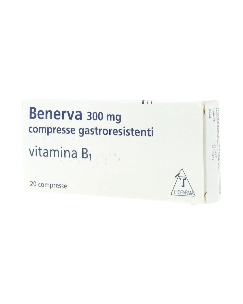 Benerva 300 mg compresse gastroresistenti. Una compressa contiene: tiamina cloridrato (vitamina B1) 300 mg. Benerva 100 mg/1 ml soluzione iniettabile per uso intramuscolare. Una fiala da 1 ml contiene: tiamina cloridrato (vitamina B1) 100 mg. Per l’elenco completo degli eccipienti, vedere 6.1.
