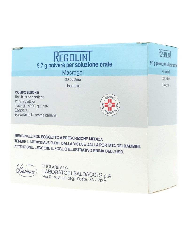 PosologiaAdulti e bambini di età superiore ad 8 anni e di peso superiore ai 20 kg La dose giornaliera deve essere adattata in base all’effetto clinico ottenuto e può variare da una bustina a giorni alterni (soprattutto nei bambini) fino a 2 bustine al giorno. Non superare il dosaggio massimo giornaliero di 20 g di macrogol. La dose indicata deve essere aggiustata in base alla risposta individuale. La dose corretta è quella minima sufficiente a produrre una facile evacuazione di feci molli. È consigliabile usare inizialmente le dosi minime previste. Quando necessario, la dose può essere poi aumentata, ma senza mai superare quella massima indicata. La dose giornaliera può essere assunta in una o due frazioni, lontano dai pasti. Nel caso si debba assumere una bustina, l’assunzione deve avvenire al mattino. Nel caso si debbano assumere più bustine, occorrerà suddividere le dosi tra mattino e sera. L’effetto di REGOLINT si manifesta nelle 24–48 ore successive la sua somministrazione. A volte possono essere necessari due giorni (o più) prima di ottenere l’effetto desiderato. Proseguire in tal caso il trattamento tenendo presente, comunque, che i lassativi devono essere usati il meno frequentemente possibile e per non più di sette giorni. L’uso per periodi di tempo maggiori richiede la prescrizione del medico dopo adeguata valutazione del singolo caso. Nei bambini, in assenza di dati clinici su periodi di somministrazione superiori a tre mesi, il trattamento non deve superare i tre mesi. Disciogliere il contenuto di una bustina in almeno 125 ml (pari ad un bicchiere) di acqua. Non aggiungere altri ingredienti. È preferibile bere l’intera quantità abbastanza rapidamente (nel giro di pochi minuti) evitando di sorseggiarla per lungo tempo. Una dieta ricca di liquidi favorisce l’effetto del medicinale. La regolarizzazione della motilità intestinale indotta dal trattamento va mantenuta con uno stile di vita sano ed una corretta alimentazione.