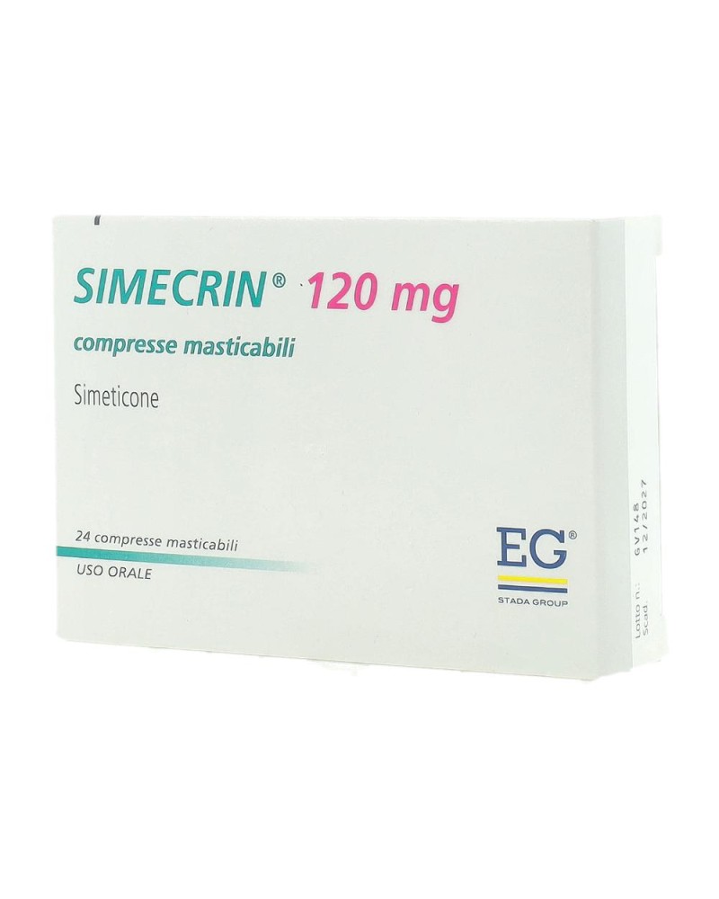 PosologiaAdulti: Simecrin 40 mg Compresse Masticabili: 4 compresse al giorno (due alla fine di ogni pasto principale). Simecrin 80 mg Compresse Masticabili: 2 compresse al giorno (una alla fine di ogni pasto principale). Simecrin 120 mg Compresse Masticabili: 2 compresse al giorno (una alla fine di ogni pasto principale). Le compresse devono essere masticate. Simecrin 80 mg/ml emulsione orale: 1-1,5 ml (alla fine di ogni pasto principale). La quantità prescritta di emulsione orale va prelevata con la siringa dosatrice e dispersa in un bicchiere d’acqua.
